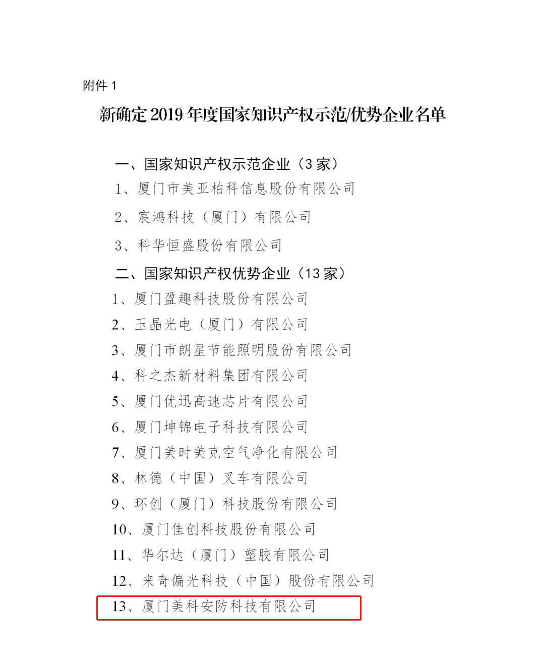 日前,廈門市市場監(jiān)督管理局(知識產(chǎn)權(quán)局)發(fā)布了《關(guān)于發(fā)放2019年度國家知識產(chǎn)權(quán)示范企業(yè)和優(yōu)勢企業(yè)獎勵的通知》,美科(MAKE)成功入選2019年度國家知識產(chǎn)權(quán)優(yōu)勢企業(yè)。